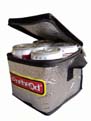 in the bears and cokes in the ice bag, the bread and fruits in the